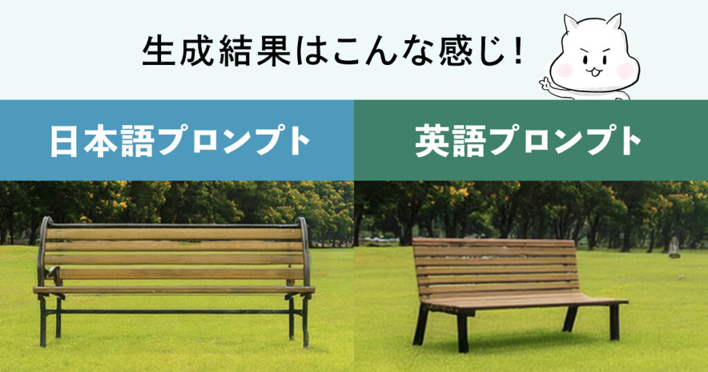 プロンプト(指示文)は「木製のベンチ」と入力。