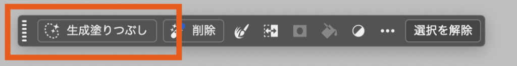 投げ縄ツールなどで追加したい範囲を選択したら、「生成塗りつぶし」ボタンが現れるのでクリック。